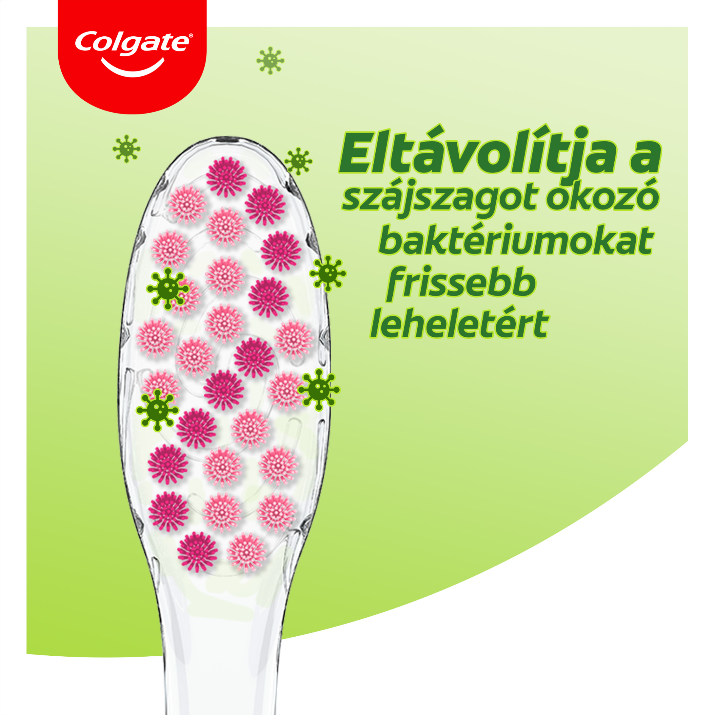 Sokoldalú tisztítás egy frissebb leheletért, Eltávolítja a szájszagot okozó baktériumokat, A különböző magasságú sörték megfelelően elérik és tisztítják a fogközt és az íny vonalát, A fogkefe és a nyelvtisztító hatékony tisztítást biztosít ezeken a területeken: fog, íny, nyelv, szájüreg, A sörték mélyen tisztítják fogaidat