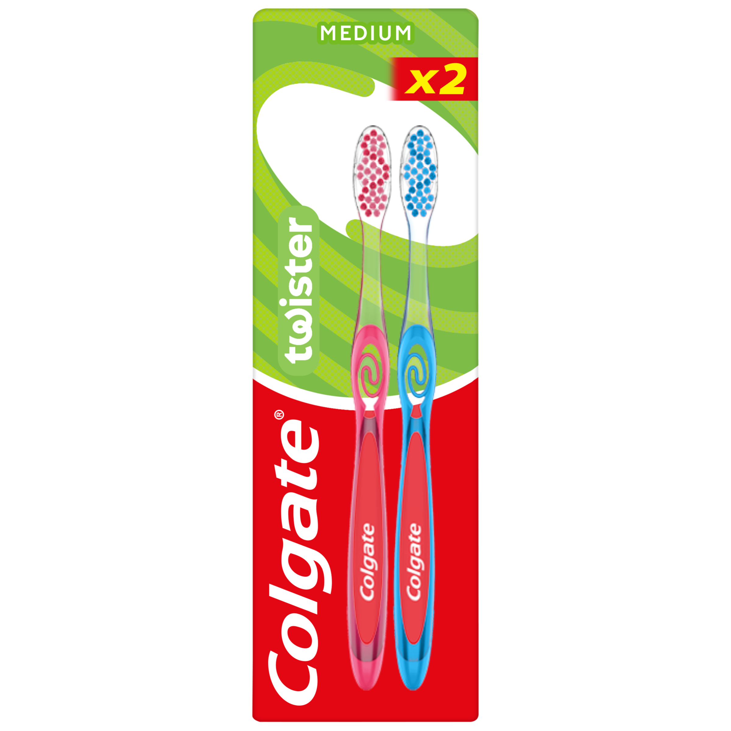 A Colgate Twister fogkefe csavart mintázatú, hullámos kialakítású szálai követik a fogfelszín vonalát, tisztítanak a fogak között, és az íny mentén.