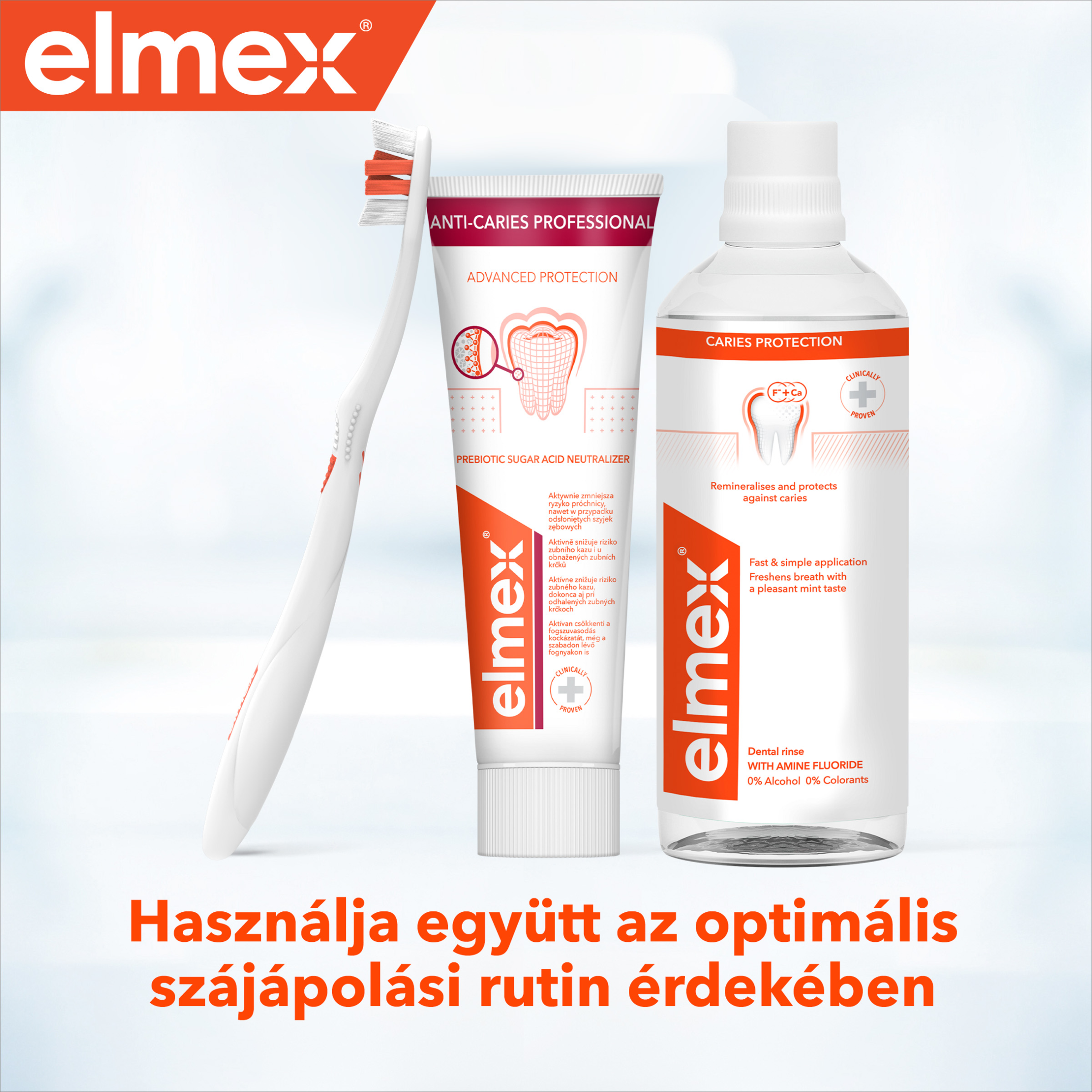 Az optimális szájápolás érdekében használd a fogkefét az elmex® Caries Professional fogkrémmel és szájöblítővel együtt!