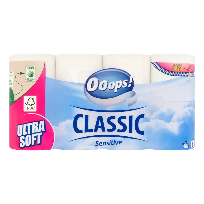 Ooops! Classic toalettpapír 4 tekercs 3 rétegű Sensitive